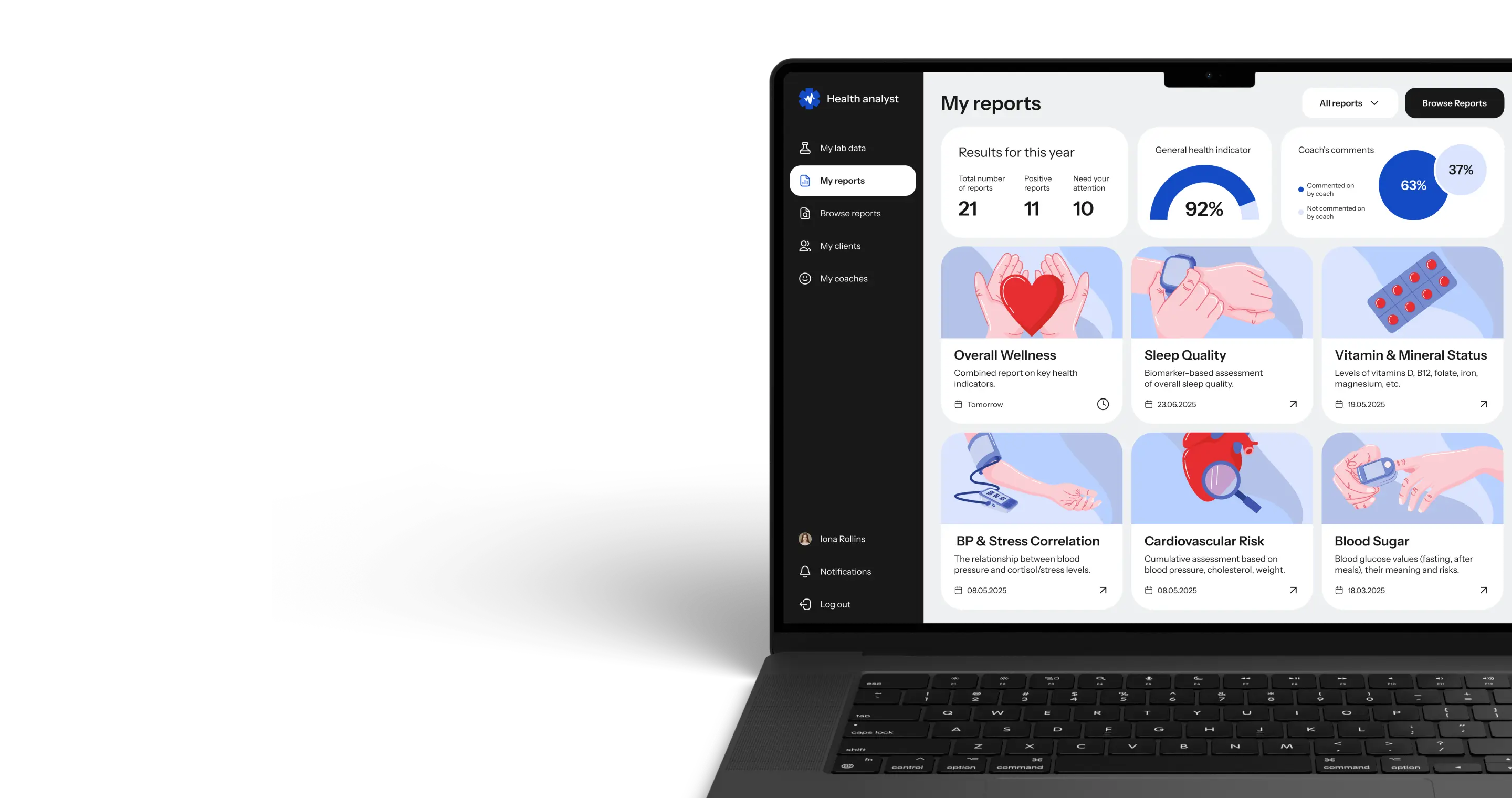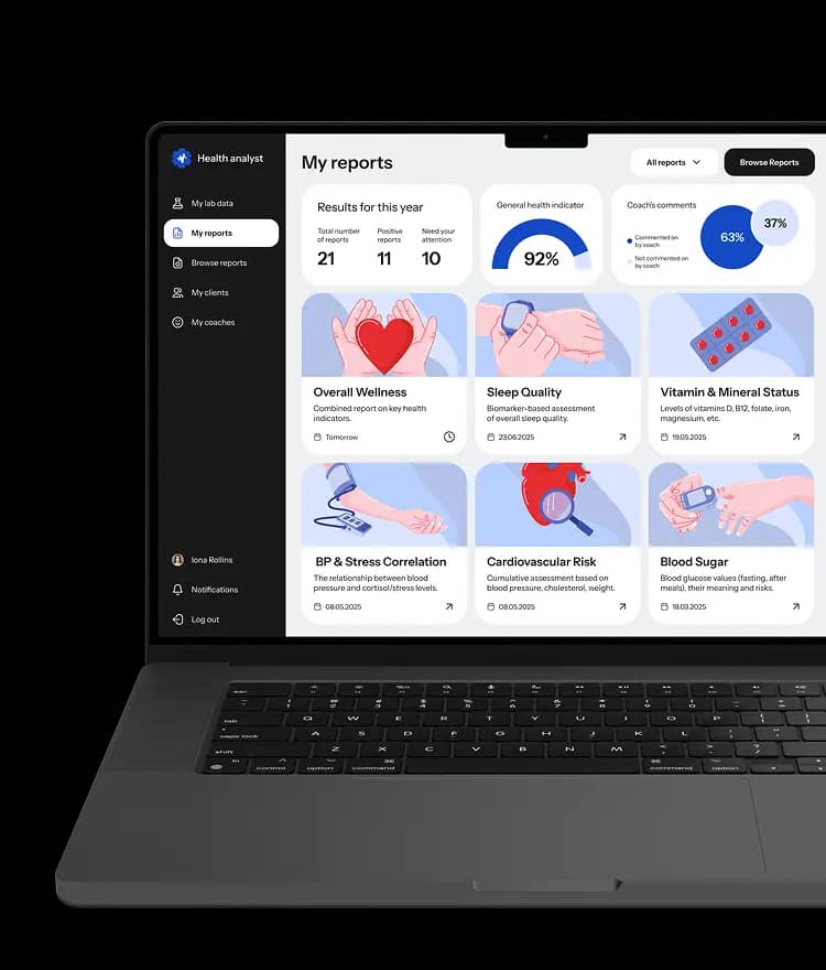 Our client aimed to reach health enthusiasts and wanted to get a platform where users can store their lab test results and receive reports based on these metrics. Also, the client wanted to allow other healthcare businesses to offer this platform's functionality to their clients.